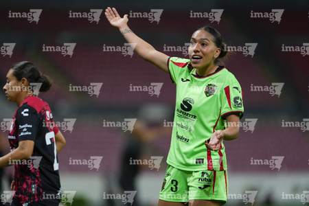 Guadalajara, Jalisco, 24 de abril de 2026. Miah Zuazua, durante el partido correspondiente a la jornada 17 del torneo Clausura 2026 de la Liga BBVA MX Femenil, entre las Rojinegras del Atlas y las Bravas de FC Juárez, realizado en el estadio Jalisco. Foto: Imago7/Andrés Sepúlveda