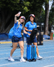 Ciudad de México, 25 de abril de 2026. Valeria Miranda, Araceli Torres y Lia Martínez, durante el partido correspondiente a la jornada 17 del torneo Clausura 2026 de la Liga BBVA MX Femenil, entre la Máquina Celeste del Cruz Azul y las Pumas de la UNAM, realizado en el estadio de la Unidad Deportiva Centenario. Foto: Imago7/ Daniel Sydney