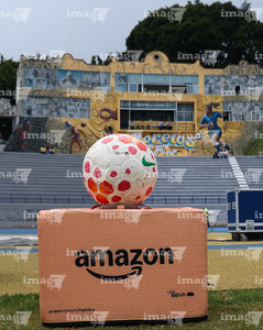 Ciudad de México, 25 de abril de 2026. Balón de futbol Nike Control sobre caja de Amazon, durante el partido correspondiente a la jornada 17 del torneo Clausura 2026 de la Liga BBVA MX Femenil, entre la Máquina Celeste del Cruz Azul y las Pumas de la UNAM, realizado en el estadio de la Unidad Deportiva Centenario. Foto: Imago7/ Daniel Sydney