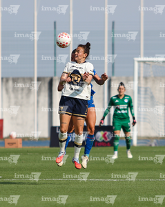 Ciudad de México, 25 de abril de 2026. Cristina Montaño e Ivonne Gutiérrez, durante el partido correspondiente a la jornada 17 del torneo Clausura 2026 de la Liga BBVA MX Femenil, entre la Máquina Celeste del Cruz Azul y las Pumas de la UNAM, realizado en el estadio de la Unidad Deportiva Centenario. Foto: Imago7/ Daniel Sydney