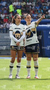 Ciudad de México, 25 de abril de 2026. Michelle González y Cristina Torres, durante el partido correspondiente a la jornada 17 del torneo Clausura 2026 de la Liga BBVA MX Femenil, entre la Máquina Celeste del Cruz Azul y las Pumas de la UNAM, realizado en el estadio de la Unidad Deportiva Centenario. Foto: Imago7/ Daniel Sydney