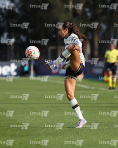 Ciudad de México, 25 de abril de 2026. Daniela Calderón, durante el partido correspondiente a la jornada 17 del torneo Clausura 2026 de la Liga BBVA MX Femenil, entre la Máquina Celeste del Cruz Azul y las Pumas de la UNAM, realizado en el estadio de la Unidad Deportiva Centenario. Foto: Imago7/ Daniel Sydney