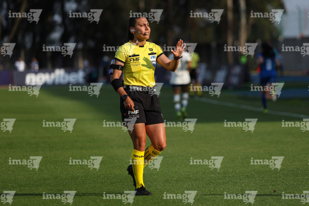 Ciudad de México, 25 de abril de 2026. Erika Monserrat González, árbitra central, durante el partido correspondiente a la jornada 17 del torneo Clausura 2026 de la Liga BBVA MX Femenil, entre la Máquina Celeste del Cruz Azul y las Pumas de la UNAM, realizado en el estadio de la Unidad Deportiva Centenario. Foto: Imago7/ Daniel Sydney