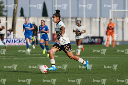 Ciudad de México, 25 de abril de 2026. Stephanie Ribeiro durante el partido correspondiente a la jornada 17 del torneo Clausura 2026 de la Liga BBVA MX Femenil, entre la Máquina Celeste del Cruz Azul y las Pumas de la UNAM, realizado en el estadio de la Unidad Deportiva Centenario. Foto: Imago7/ Daniel Sydney