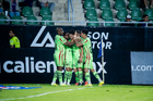 Mazatlán, Sinaloa, 9 de enero de 2026. Jugadores de Mazatlán FC, durante el partido correspondiente a la jornada 1 del torneo Clausura 2026 de la Liga BBVA MX, entre los Cañoneros del Mazatlán FC y los Bravos de FC Juárez, realizado en el estadio El Encanto. Foto: Imago7/ Diego Padilla