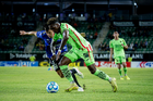 Mazatlán, Sinaloa, 9 de enero de 2026. Jefferson Intriago y Ricardo Oliveira, durante el partido correspondiente a la jornada 1 del torneo Clausura 2026 de la Liga BBVA MX, entre los Cañoneros del Mazatlán FC y los Bravos de FC Juárez, realizado en el estadio El Encanto. Foto: Imago7/ Diego Padilla