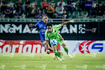 Mazatlán, Sinaloa, 9 de enero de 2026. Mauro Zaleta y Madson, durante el partido correspondiente a la jornada 1 del torneo Clausura 2026 de la Liga BBVA MX, entre los Cañoneros del Mazatlán FC y los Bravos de FC Juárez, realizado en el estadio El Encanto. Foto: Imago7/ Diego Padilla