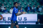 Mazatlán, Sinaloa, 9 de enero de 2026. Denzell García en festejo de gol, durante el partido correspondiente a la jornada 1 del torneo Clausura 2026 de la Liga BBVA MX, entre los Cañoneros del Mazatlán FC y los Bravos de FC Juárez, realizado en el estadio El Encanto. Foto: Imago7/ Diego Padilla
