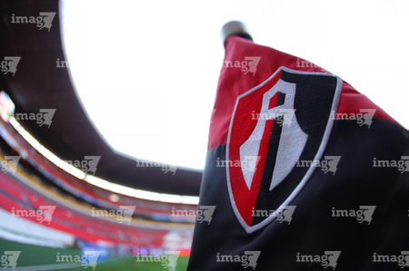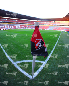 Guadalajara, Jalisco, 9 de enero de 2026. Escudo de Atlas, durante el partido correspondiente a la jornada 1 del torneo Clausura 2026 de la Liga BBVA MX, entre los Rojinegros del Atlas y el Club Puebla, realizado en el estadio Jalisco. Foto: Imago7/ Juan Carlos Cubeyro.