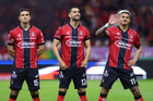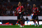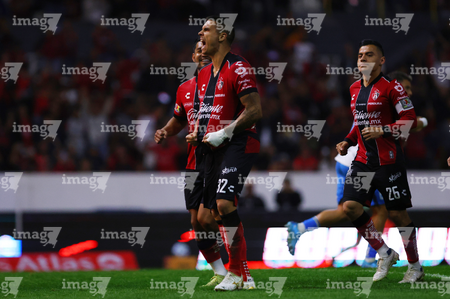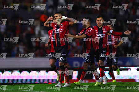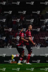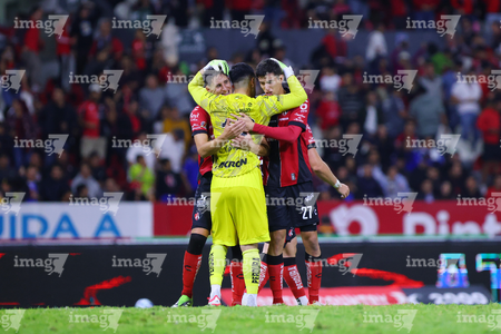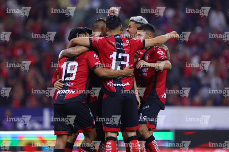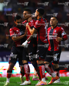 Guadalajara, Jalisco, 9 de enero de 2026. Jugadores de Atlas en festejo de gol, durante el partido correspondiente a la jornada 1 del torneo Clausura 2026 de la Liga BBVA MX, entre los Rojinegros del Atlas y el Club Puebla, realizado en el estadio Jalisco. Foto: Imago7/ Juan Carlos Cubeyro.