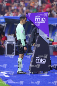 Guadalajara, Jalisco, 9 de enero de 2026. César Arturo Ramos, árbitro central, consulta el VAR durante el partido correspondiente a la jornada 1 del torneo Clausura 2026 de la Liga BBVA MX, entre los Rojinegros del Atlas y el Club Puebla, realizado en el estadio Jalisco. Foto: Imago7/ Juan Carlos Cubeyro.