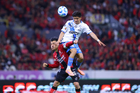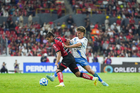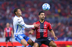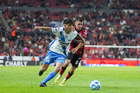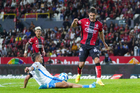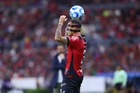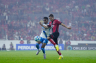 Guadalajara, Jalisco, 9 de enero de 2026. Manuel Capasso falla tiro a gol, durante el partido correspondiente a la jornada 1 del torneo Clausura 2026 de la Liga BBVA MX, entre los Rojinegros del Atlas y el Club Puebla, realizado en el estadio Jalisco. Foto: Imago7/ Juan Carlos Cubeyro.
