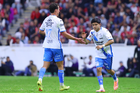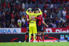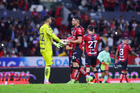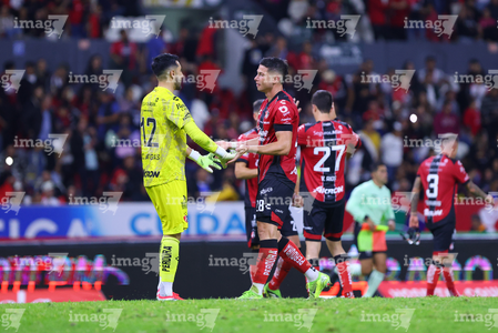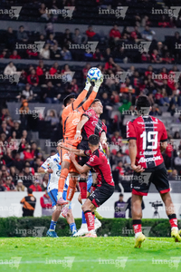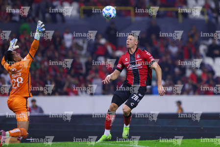 Guadalajara, Jalisco, 9 de enero de 2026. Camilo Vargas y Manuel Capasso, durante el partido correspondiente a la jornada 1 del torneo Clausura 2026 de la Liga BBVA MX, entre los Rojinegros del Atlas y el Club Puebla, realizado en el estadio Jalisco. Foto: Imago7/ Juan Carlos Cubeyro.