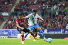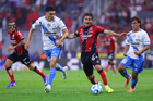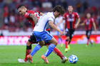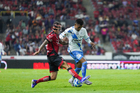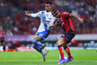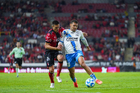 Guadalajara, Jalisco, 9 de enero de 2026. Angelo Araos (D), durante el partido correspondiente a la jornada 1 del torneo Clausura 2026 de la Liga BBVA MX, entre los Rojinegros del Atlas y el Club Puebla, realizado en el estadio Jalisco. Foto: Imago7/ Hugo Ramirez