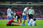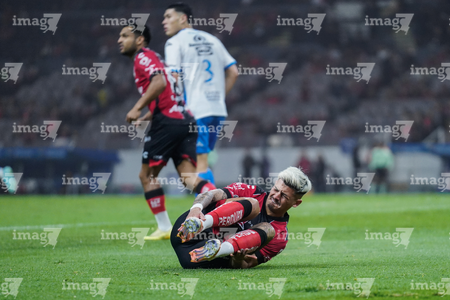 Guadalajara, Jalisco, 9 de enero de 2026. Diego González resultó lesionado, durante el partido correspondiente a la jornada 1 del torneo Clausura 2026 de la Liga BBVA MX, entre los Rojinegros del Atlas y el Club Puebla, realizado en el estadio Jalisco. Foto: Imago7/ Alejandro Lias
