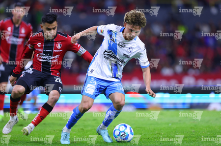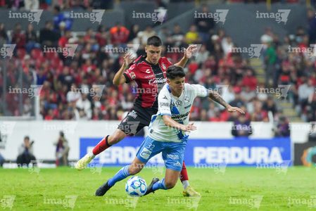 Guadalajara, Jalisco, 9 de enero de 2026. Alejandro Organista (D), durante el partido correspondiente a la jornada 1 del torneo Clausura 2026 de la Liga BBVA MX, entre los Rojinegros del Atlas y el Club Puebla, realizado en el estadio Jalisco. Foto: Imago7/ Hugo Ramirez
