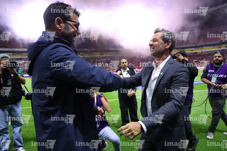 Guadalajara, Jalisco, 9 de enero de 2026. Alberto Espigares, director técnico y Diego Cocca, director técnico, durante el partido correspondiente a la jornada 1 del torneo Clausura 2026 de la Liga BBVA MX, entre los Rojinegros del Atlas y el Club Puebla, realizado en el estadio Jalisco. Foto: Imago7/ Juan Carlos Cubeyro.