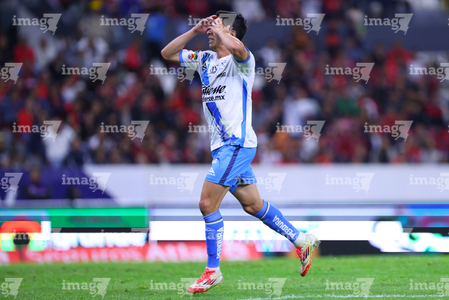 Guadalajara, Jalisco, 9 de enero de 2026. Carlos Baltazar, durante el partido correspondiente a la jornada 1 del torneo Clausura 2026 de la Liga BBVA MX, entre los Rojinegros del Atlas y el Club Puebla, realizado en el estadio Jalisco. Foto: Imago7/ Juan Carlos Cubeyro.