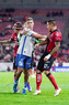 Guadalajara, Jalisco, 9 de enero de 2026. Uros Durdevic e Iker Moreno, durante el partido correspondiente a la jornada 1 del torneo Clausura 2026 de la Liga BBVA MX, entre los Rojinegros del Atlas y el Club Puebla, realizado en el estadio Jalisco. Foto: Imago7/ Juan Carlos Cubeyro.