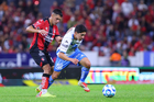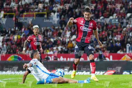 Guadalajara, Jalisco, 9 de enero de 2026. Ricardo Gutiérrez y Manuel Capasso , durante el partido correspondiente a la jornada 1 del torneo Clausura 2026 de la Liga BBVA MX, entre los Rojinegros del Atlas y el Club Puebla, realizado en el estadio Jalisco. Foto: Imago7/ Juan Carlos Cubeyro.