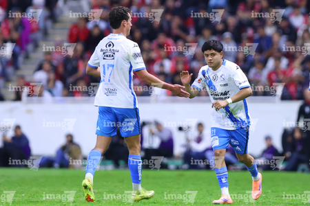 Guadalajara, Jalisco, 9 de enero de 2026. Mateo García y Luis Rey, durante el partido correspondiente a la jornada 1 del torneo Clausura 2026 de la Liga BBVA MX, entre los Rojinegros del Atlas y el Club Puebla, realizado en el estadio Jalisco. Foto: Imago7/ Juan Carlos Cubeyro.
