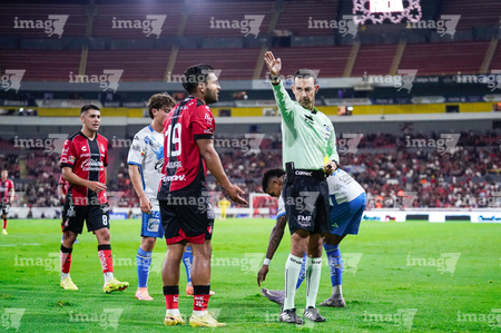 Guadalajara, Jalisco, 9 de enero de 2026. César Arturo Ramos, árbitro central, durante el partido correspondiente a la jornada 1 del torneo Clausura 2026 de la Liga BBVA MX, entre los Rojinegros del Atlas y el Club Puebla, realizado en el estadio Jalisco. Foto: Imago7/ Alejandro Lias