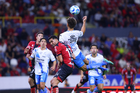 Guadalajara, Jalisco, 9 de enero de 2026. Uros Durdevic y Eduardo Navarro resultaron lesionados, durante el partido correspondiente a la jornada 1 del torneo Clausura 2026 de la Liga BBVA MX, entre los Rojinegros del Atlas y el Club Puebla, realizado en el estadio Jalisco. Foto: Imago7/ Hugo Ramirez