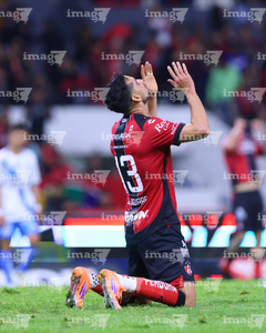 Guadalajara, Jalisco, 9 de enero de 2026. Edgar Guerra en lamento, durante el partido correspondiente a la jornada 1 del torneo Clausura 2026 de la Liga BBVA MX, entre los Rojinegros del Atlas y el Club Puebla, realizado en el estadio Jalisco. Foto: Imago7/ Hugo Ramirez