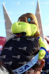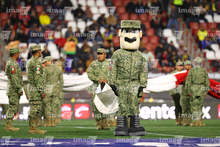 Tijuana, Baja California, 9 de enero de 2026. Sargento Bravo, botarga del Ejército Mexicano, durante el partido correspondiente a la jornada 1 del torneo Clausura 2026 de la Liga BBVA MX, entre los Xolos de Tijuana y las Águilas del América, realizado en el estadio Caliente. Foto: Imago7/ David Vega