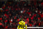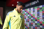 Tijuana, Baja California, 9 de enero de 2026. Rodrigo Aguirre en lamento, durante el partido correspondiente a la jornada 1 del torneo Clausura 2026 de la Liga BBVA MX, entre los Xolos de Tijuana y las Águilas del América, realizado en el estadio Caliente. Foto: Imago7/ David Vega