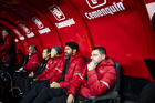 Tijuana, Baja California, 9 de enero de 2026. Jugadores suplentes del Club América, durante el partido correspondiente a la jornada 1 del torneo Clausura 2026 de la Liga BBVA MX, entre los Xolos de Tijuana y las Águilas del América, realizado en el estadio Caliente. Foto: Imago7/Alejandro Gutiérrez Mora