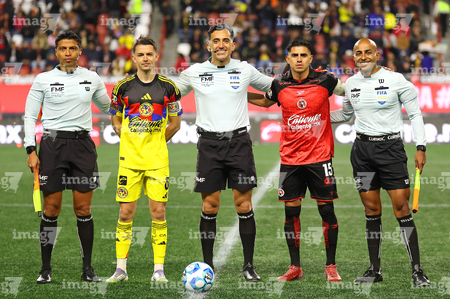 Tijuana, Baja California, 9 de enero de 2026. Protocolo, durante el partido correspondiente a la jornada 1 del torneo Clausura 2026 de la Liga BBVA MX, entre los Xolos de Tijuana y las Águilas del América, realizado en el estadio Caliente. Foto: Imago7/Alejandro Gutiérrez Mora