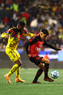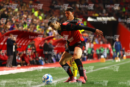 Tijuana, Baja California, 9 de enero de 2026. Gilberto Mora e Israel Reyes, durante el partido correspondiente a la jornada 1 del torneo Clausura 2026 de la Liga BBVA MX, entre los Xolos de Tijuana y las Águilas del América, realizado en el estadio Caliente. Foto: Imago7/Alejandro Gutiérrez Mora