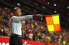 Tijuana, Baja California, 9 de enero de 2026. Michel Ricardo Espinoza, árbitro asistente, durante el partido correspondiente a la jornada 1 del torneo Clausura 2026 de la Liga BBVA MX, entre los Xolos de Tijuana y las Águilas del América, realizado en el estadio Caliente. Foto: Imago7/ David Vega
