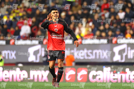 Tijuana, Baja California, 9 de enero de 2026. Joe Corona se retira, durante el partido correspondiente a la jornada 1 del torneo Clausura 2026 de la Liga BBVA MX, entre los Xolos de Tijuana y las Águilas del América, realizado en el estadio Caliente. Foto: Imago7/ David Vega