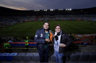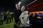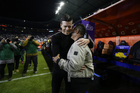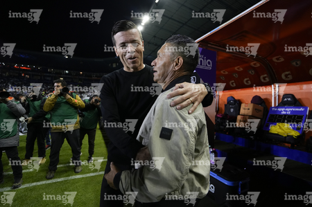 Pachuca, Hidalgo, 13 de enero de 2026. Esteban Solari, director técnico e Ignacio Ambriz, director técnico, durante el partido correspondiente a la jornada 2 del torneo Clausura 2026 de la Liga BBVA MX, entre los Tuzos del Pachuca y los Esmeraldas del León, realizado en el estadio Hidalgo. Foto: Imago7/ Sebastian Laureano Miranda