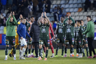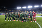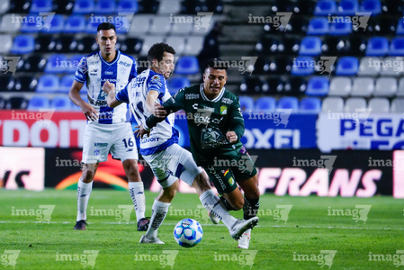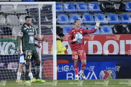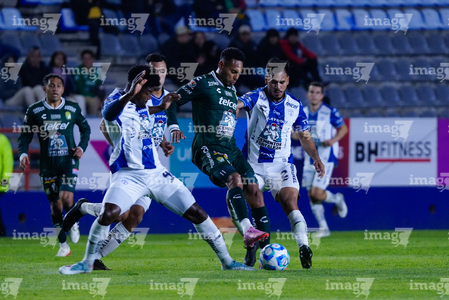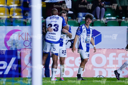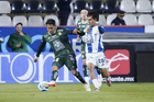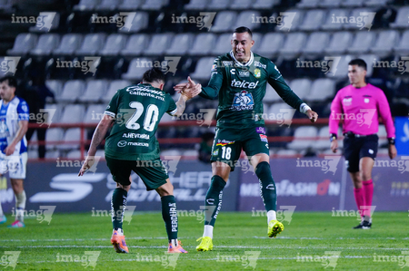Pachuca, Hidalgo, 13 de enero de 2026. Jugadores de León, durante el partido correspondiente a la jornada 2 del torneo Clausura 2026 de la Liga BBVA MX, entre los Tuzos del Pachuca y los Esmeraldas del León, realizado en el estadio Hidalgo. Foto: Imago7/ Sebastian Laureano Miranda