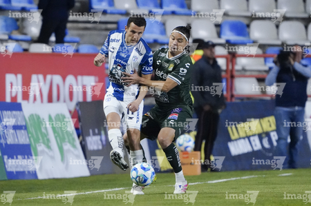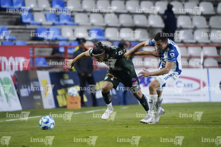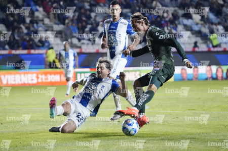 Pachuca, Hidalgo, 13 de enero de 2026. Juan Pablo Domínguez y Elías Montiel, durante el partido correspondiente a la jornada 2 del torneo Clausura 2026 de la Liga BBVA MX, entre los Tuzos del Pachuca y los Esmeraldas del León, realizado en el estadio Hidalgo. Foto: Imago7/ Sebastian Laureano Miranda