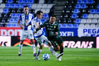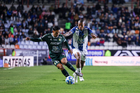 Pachuca, Hidalgo, 13 de enero de 2026. Sebastián Vegas y Salomón Rondon, durante el partido correspondiente a la jornada 2 del torneo Clausura 2026 de la Liga BBVA MX, entre los Tuzos del Pachuca y los Esmeraldas del León, realizado en el estadio Hidalgo. Foto: Imago7/ Jacqueline Pedraza