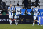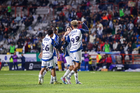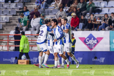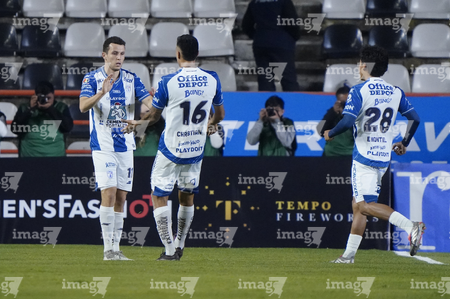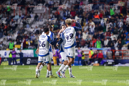 Pachuca, Hidalgo, 13 de enero de 2026. Jugadores de Pachuca en festejo de gol, durante el partido correspondiente a la jornada 2 del torneo Clausura 2026 de la Liga BBVA MX, entre los Tuzos del Pachuca y los Esmeraldas del León, realizado en el estadio Hidalgo. Foto: Imago7/ Elizabeth Hernández