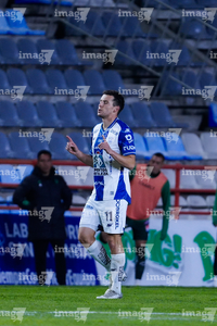Pachuca, Hidalgo, 13 de enero de 2026. Carlos Moreno en festejo, durante el partido correspondiente a la jornada 2 del torneo Clausura 2026 de la Liga BBVA MX, entre los Tuzos del Pachuca y los Esmeraldas del León, realizado en el estadio Hidalgo. Foto: Imago7/ Elizabeth Hernández