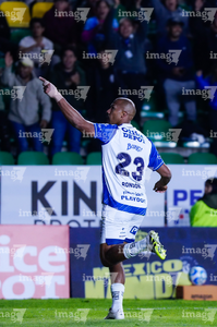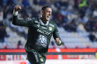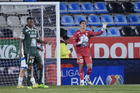 Pachuca, Hidalgo, 13 de enero de 2026. Carlos Moreno en festejo, durante el partido correspondiente a la jornada 2 del torneo Clausura 2026 de la Liga BBVA MX, entre los Tuzos del Pachuca y los Esmeraldas del León, realizado en el estadio Hidalgo. Foto: Imago7/ Jacqueline Pedraza