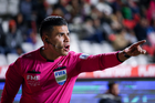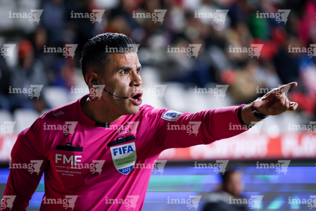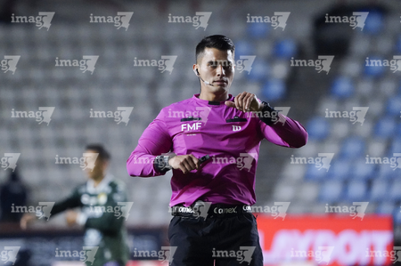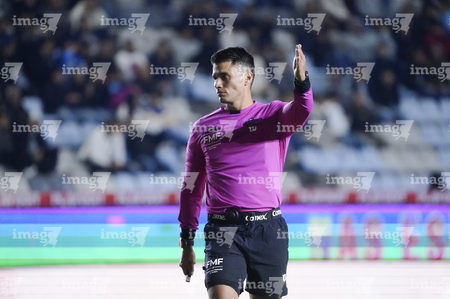 Pachuca, Hidalgo, 13 de enero de 2026. Guillermo Pacheco Larios, árbitro central, durante el partido correspondiente a la jornada 2 del torneo Clausura 2026 de la Liga BBVA MX, entre los Tuzos del Pachuca y los Esmeraldas del León, realizado en el estadio Hidalgo. Foto: Imago7/ Sebastian Laureano Miranda