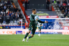 Pachuca, Hidalgo, 13 de enero de 2026. Oussama Idrissi, durante el partido correspondiente a la jornada 2 del torneo Clausura 2026 de la Liga BBVA MX, entre los Tuzos del Pachuca y los Esmeraldas del León, realizado en el estadio Hidalgo. Foto: Imago7/ Sebastian Laureano Miranda