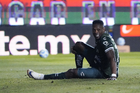Pachuca, Hidalgo, 13 de enero de 2026. Diber Cambindo en lamento, durante el partido correspondiente a la jornada 2 del torneo Clausura 2026 de la Liga BBVA MX, entre los Tuzos del Pachuca y los Esmeraldas del León, realizado en el estadio Hidalgo. Foto: Imago7/ Sebastian Laureano Miranda