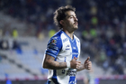 Pachuca, Hidalgo, 13 de enero de 2026. Oussama Idrissi en festejo de gol, durante el partido correspondiente a la jornada 2 del torneo Clausura 2026 de la Liga BBVA MX, entre los Tuzos del Pachuca y los Esmeraldas del León, realizado en el estadio Hidalgo. Foto: Imago7/ Sebastian Laureano Miranda