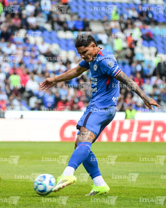 Puebla, Puebla, 13 de enero de 2026. Gaddi Aguirre, durante el partido correspondiente a la jornada 2 del torneo Clausura 2026 de la Liga BBVA MX, entre la Máquina Celeste del Cruz Azul y los Rojinegros del Atlas, realizado en el estadio Cuauhtémoc. Foto: Imago7/ Alexis Chavez
