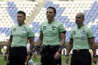 Puebla, Puebla, 13 de enero de 2026. Árbitros, durante el partido correspondiente a la jornada 2 del torneo Clausura 2026 de la Liga BBVA MX, entre la Máquina Celeste del Cruz Azul y los Rojinegros del Atlas, realizado en el estadio Cuauhtémoc. Foto: Imago7/Mireya Novo