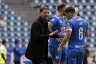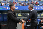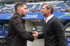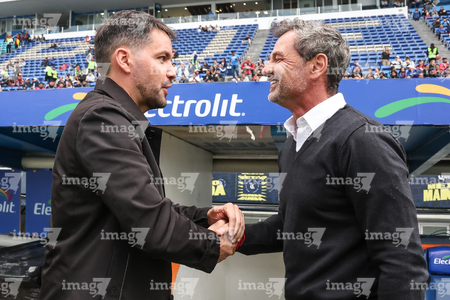 Puebla, Puebla, 13 de enero de 2026. Nicolás Larcamón, director técnico y Diego Cocca, director técnico, durante el partido correspondiente a la jornada 2 del torneo Clausura 2026 de la Liga BBVA MX, entre la Máquina Celeste del Cruz Azul y los Rojinegros del Atlas, realizado en el estadio Cuauhtémoc. Foto: Imago7/ Diego Alducin