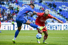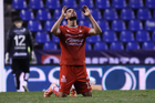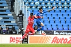 Puebla, Puebla, 13 de enero de 2026. Gabriel Fernández anota gol, durante el partido correspondiente a la jornada 2 del torneo Clausura 2026 de la Liga BBVA MX, entre la Máquina Celeste del Cruz Azul y los Rojinegros del Atlas, realizado en el estadio Cuauhtémoc. Foto: Imago7/ Alexis Chavez